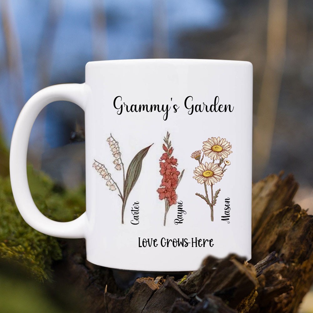 Grandma's Garden Mug Personalized Birth Month Flower With Grandchildren Name For Mother's Day Christmas