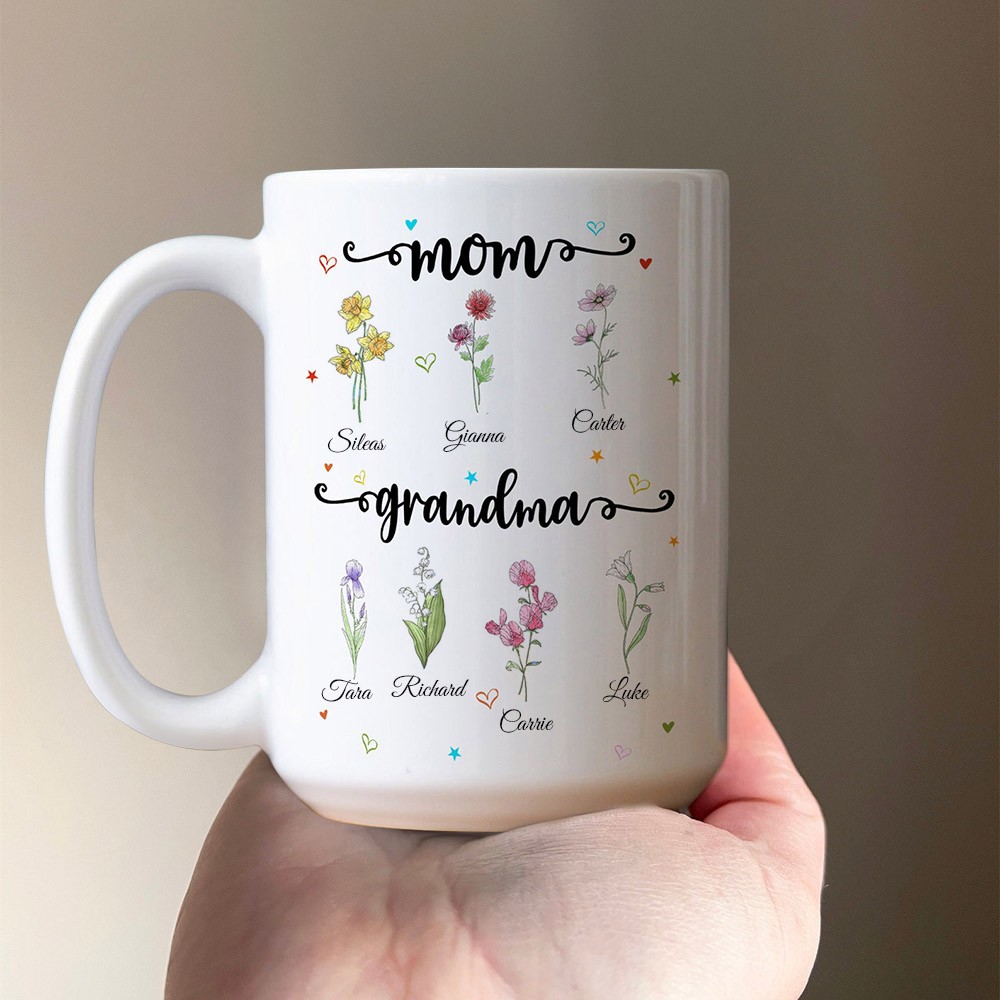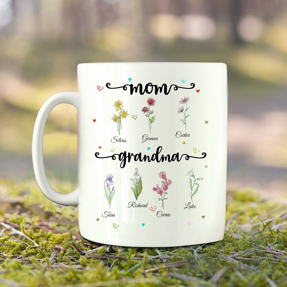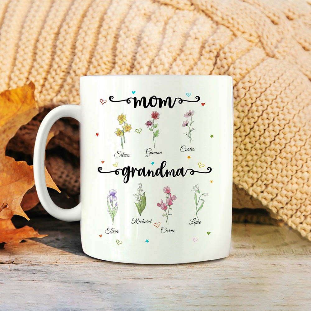 Personalized Birth Flower Mug With Grandchildren Names for Grandma / Nanny / Nana / Mom