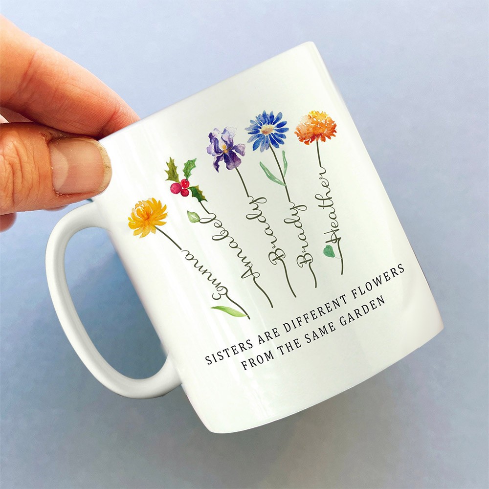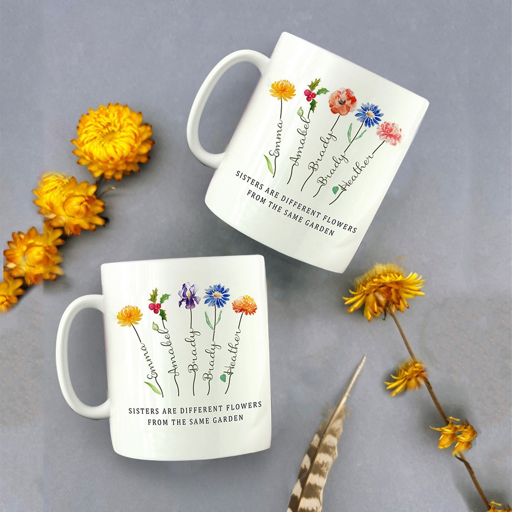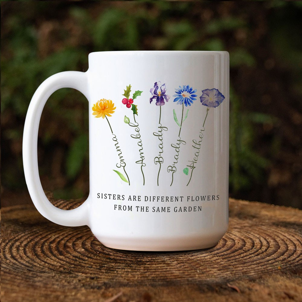 Sisters Are Different Flowers From the Same Garden Mug Personalized Birth Flower Gift Ideas For Grandma Mom Sister