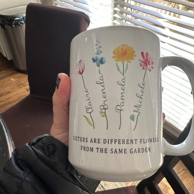 Sisters Are Different Flowers From the Same Garden Mug Personalized Birth Flower Gift Ideas For Grandma Mom Sister